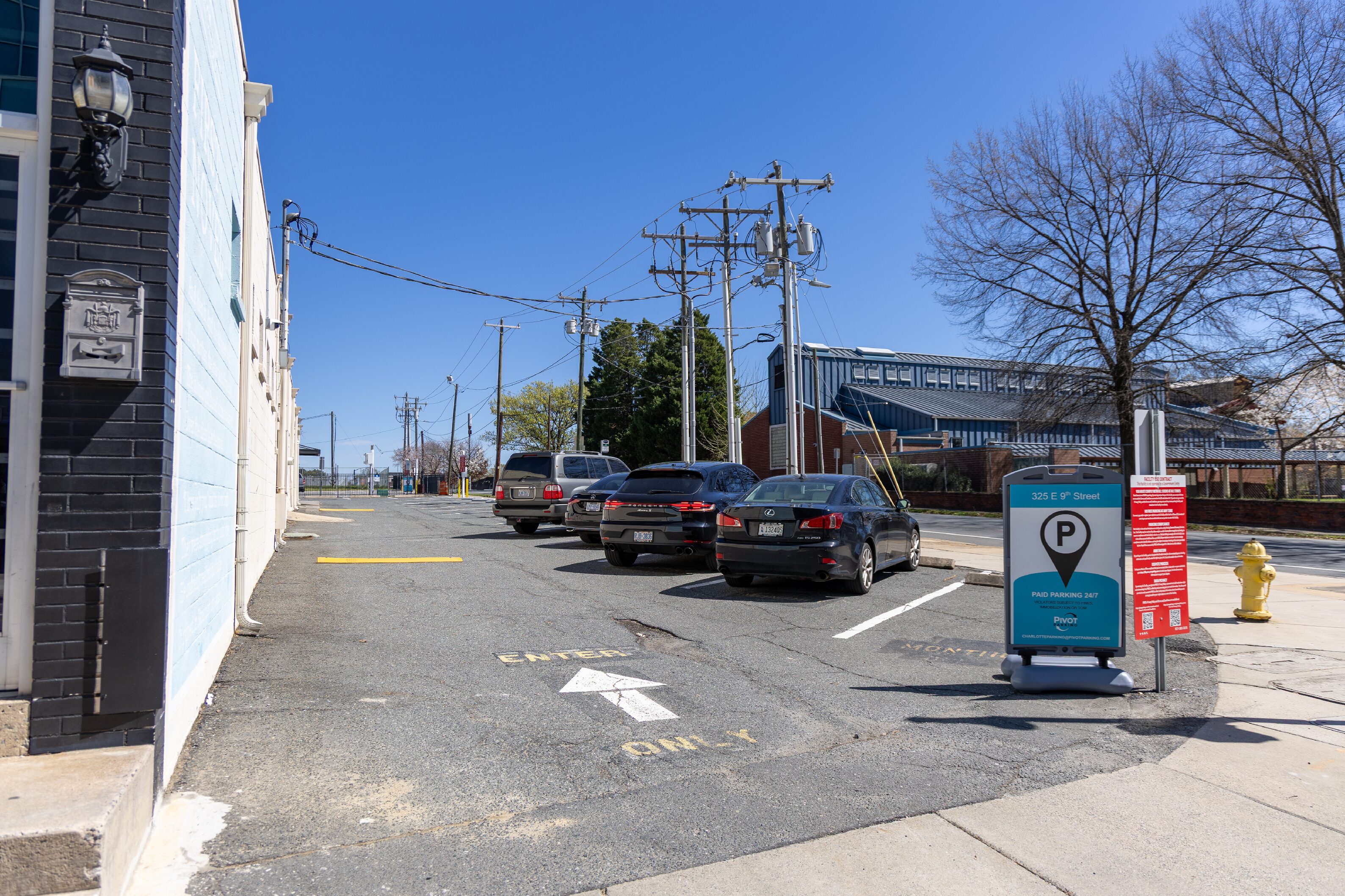 Paid surface lot Uptown Charlotte offering convenient access to Spectrum Center, nearby offices, restaurants, Co-Lab - First Ward Park, and other entertainment destinations. The location provides daily and monthly parking options, offering a cost-effective, reliable solution for Uptown commuters and visitors.